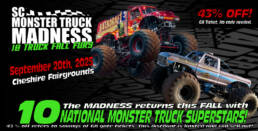 🎉 SC Monster Truck Madness returns to the Cheshire Fairgrounds in Swanzey NH this fall for our 10 Truck Fall Fury! 🎉