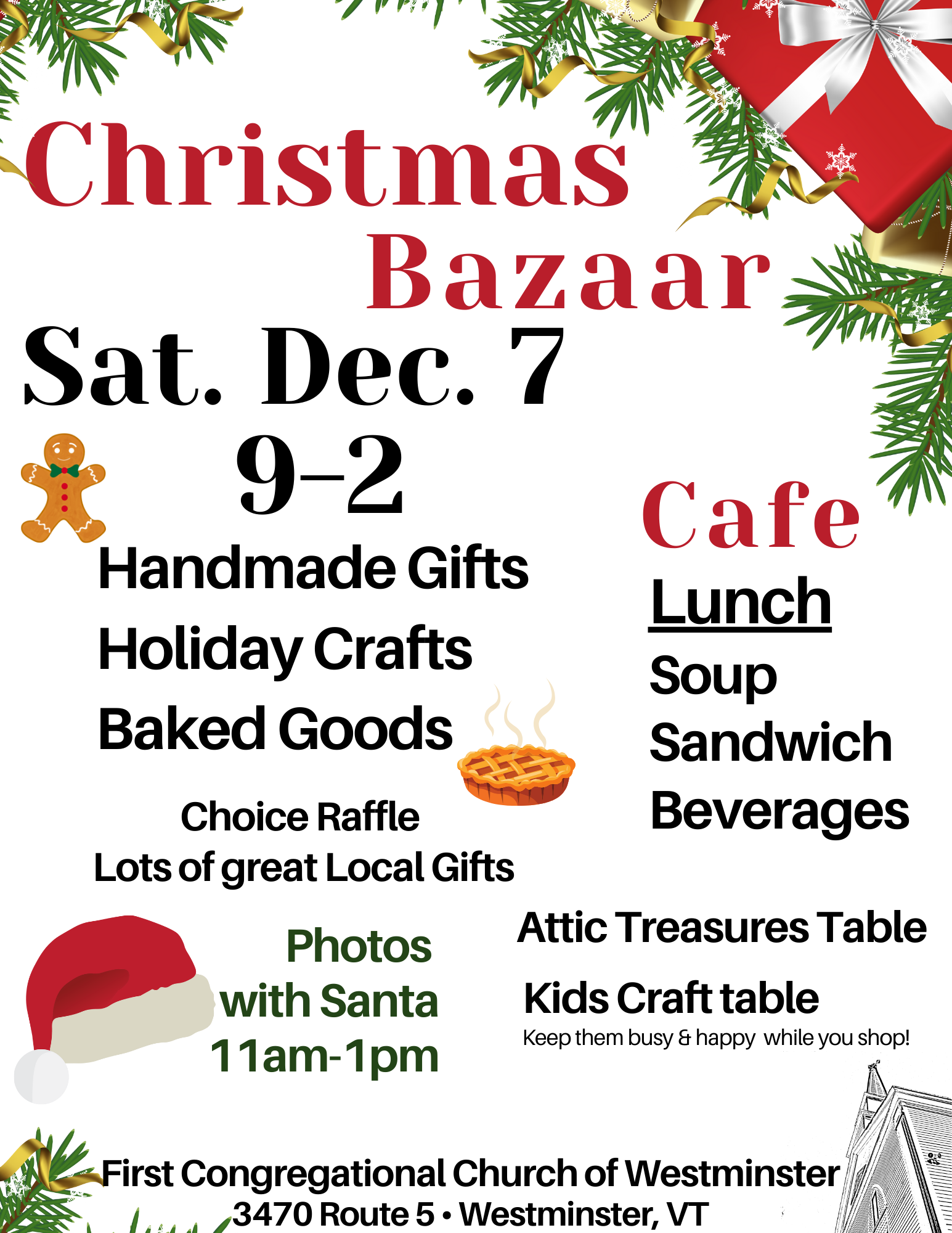 The First Congregational Church of Westminster Women’s Fellowship will hold their Annual Christmas Bazaar On Saturday, Dec. 7 from 9-2pm