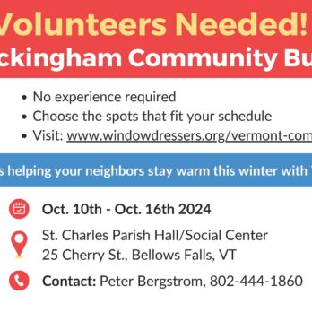 The Rockingham Energy Committee needs volunteers to help build 205 insulating window inserts for 27 families in Rockingham and nearby towns at a “community build” in Bellows Falls that starts next week (October 11-16). The program is called WindowDressers. This is a wonderful opportunity for community members to work together and assemble the inserts that both increase comfort and reduce fuel bills. There is no need to be a crafts person. Training is provided – or you can volunteer to provide lunch food. You can sign up online here:Â https://signup.com/go/UehebBr or for more information go to https://windowdressers.org/